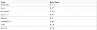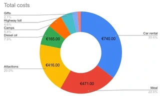 I decided to keep track of all our spending so we could easily compare it with other vacation options. Here are the costs broken down into major categories: